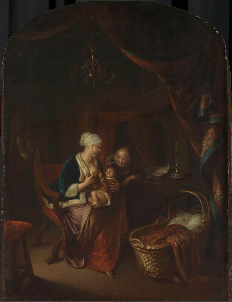 This over 360 years old work of art named A mother giving her child the breast was made by the artist Domenicus van Tol in 1660. Today, this artpiece is part of the art collection of Rijksmuseum, which is the largest museum for Dutch art and history from the Middle Ages to the present day. We are pleased to mention that the public domain artpiece is being provided with courtesy of Rijksmuseum.The creditline of the artwork is: . On top of that, alignment of the digital reproduction is in portrait format with an image ratio of 3 : 4, which means that the length is 25% shorter than the width. Domenicus van Tol was a male painter, whose style can be attributed mainly to Baroque. The painter lived for a total of 51 years and was born in the year 1625 and passed away in 1676.