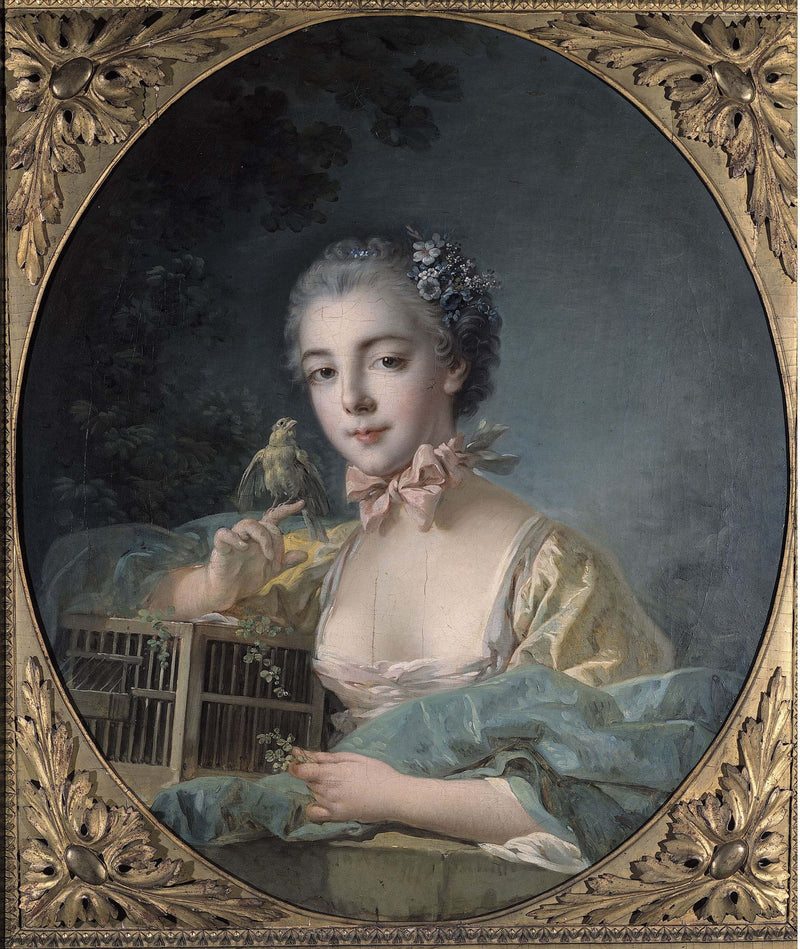 It is generally considered that the model of this portrait is Marie-Emilie Baldwin, youngest daughter of the painter François Boucher. She married the painter Pierre-Antoine Baudouin, pupil of his father, April 8, 1758 in Paris.