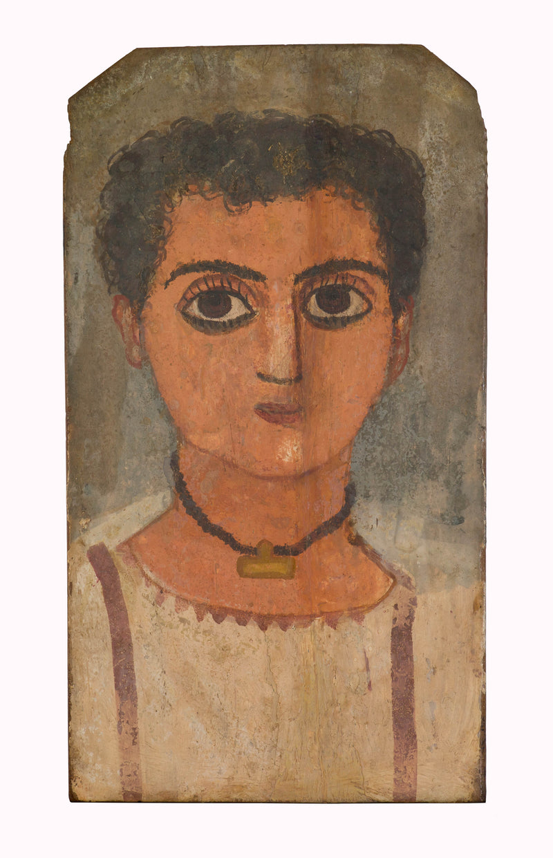the artist Egyptian painted this work of art titled "Portrait of a Young Boy". The version of the work of art measures the size: irregular: 10 13/16 x 6 in (27,4 x 15,2 cm) and was painted with distemper on wood panel. The artwork belongs to the Saint Louis Art Museum's digital art collection, which is a world renowned fine arts museum known for its outstanding and comprehensive collection spanning 5000 years of cultures and genres. This masterpiece, which belongs to the public domain is supplied with courtesy of Saint Louis Art Museum, Missouri, Gift of Mr. and Mrs. John Simon. In addition to that, the artwork has the following creditline: Gift of Mr. and Mrs. John Simon. What is more, the alignment of the digital reproduction is in portrait format with a side ratio of 2 : 3, which means that the length is 33% shorter than the width.