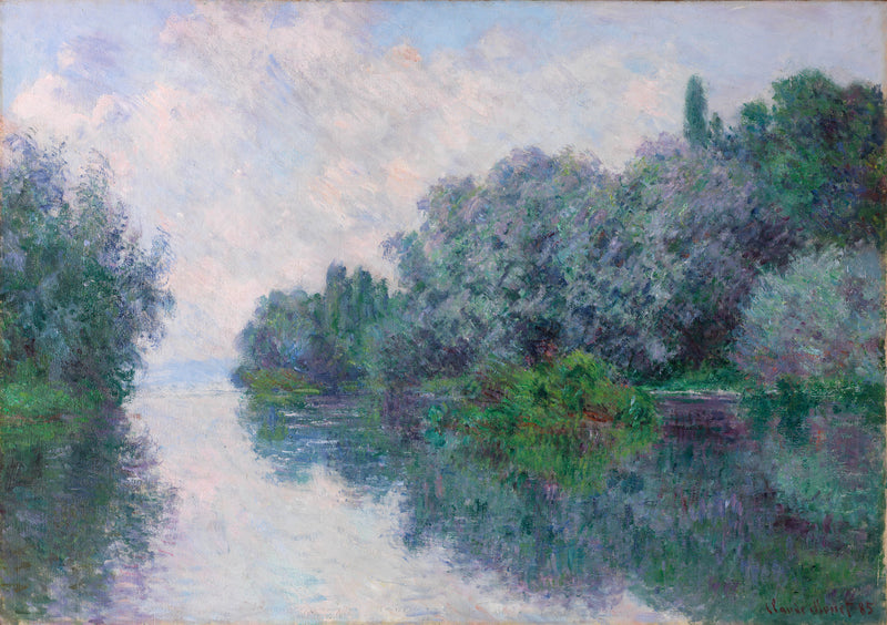In 1885 the artist Claude Monet painted this 19th century work of art The Seine at Giverny. The original has the following size: 64,8 x 92,7 cm (25 1/2 x 36 1/2 in) and was painted with the technique of oil on canvas. "Signed and dated lower right: Claude Monet 85" is the artwork's original inscription. It can be viewed in in the RISD Museum's digital art collection, which is one of the most important art museums in the United States. With courtesy of RISD Museum, Providence, RI (public domain license). Also, the artwork has the following creditline: Museum Appropriation Fund, by exchange. Furthermore, alignment of the digital reproduction is landscape and has a side ratio of 1.4 : 1, which implies that the length is 40% longer than the width. Claude Monet was a male painter from France, whose artistic style can primarily be assigned to Impressionism. The French painter was born in 1840 in Paris, Ile-de-France, France and deceased at the age of 86 in 1926 in Giverny, Normandie, France.