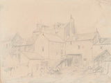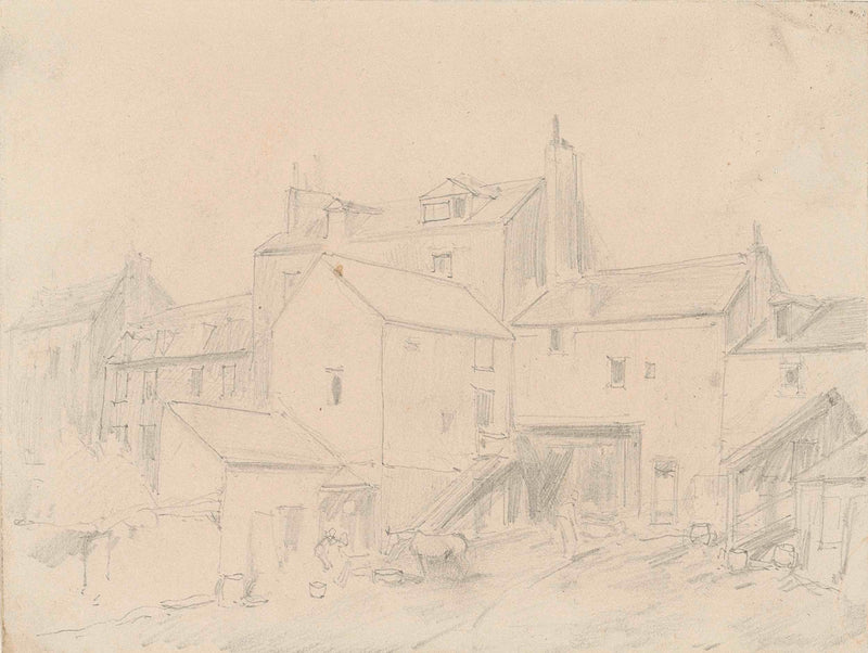 Louis-Adolphe Hervier, 1828 - Rückseite des Hauses mit einem Pferd, das auf einem ruht - Kunstdruck