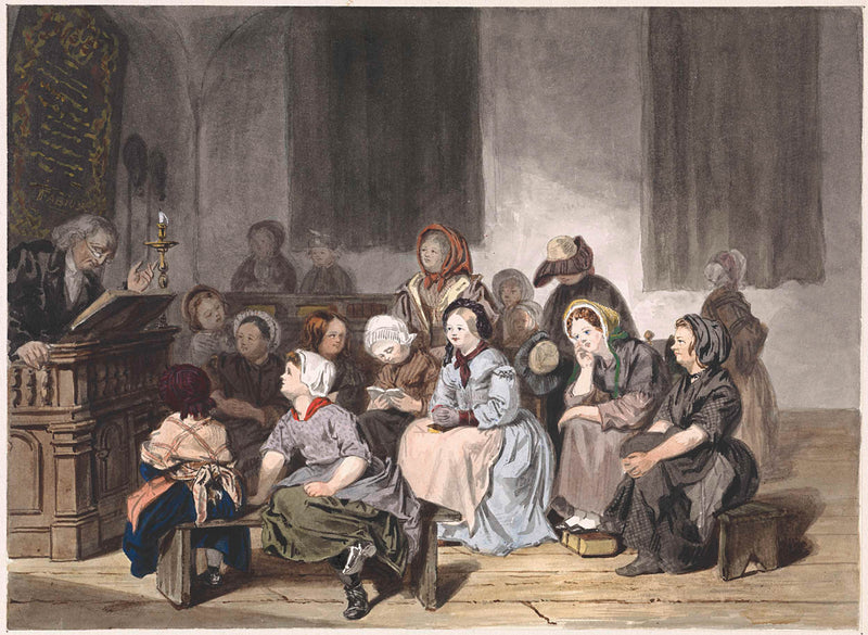 Jan Fabius Czn, 1830 - Gottesdienst mit Mädchen - Kunstdruck