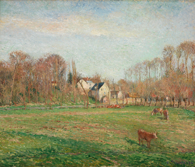 In 1884 the French painter Camille Pissarro created the modern art piece of art. The beyond 130 year old original has the size: 54,3 x 65,6 cm (21 3/8 x 25 13/16 in) and was painted on the medium oil on canvas. The original artwork's inscription is the following: "signed and dated lower right: C. Pissarro. 84". Today, this artpiece can be viewed in in the RISD Museum's digital art collection in Providence, Rhode Island, United States. With courtesy of - RISD Museum, Providence, RI (licensed - public domain). The creditline of the artwork is the following: gift of Mrs. Houghton P. Metcalf in memory of her husband, Houghton P. Metcalf. Moreover, alignment is landscape and has an aspect ratio of 1.2 : 1, which means that the length is 20% longer than the width. Camille Pissarro was a artist, painter of French nationality, whose artistic style was mainly Impressionism. The French painter was born in 1830 in Charlotte Amalie, Virgin Islands of the United States and deceased at the age of 73 in 1903.