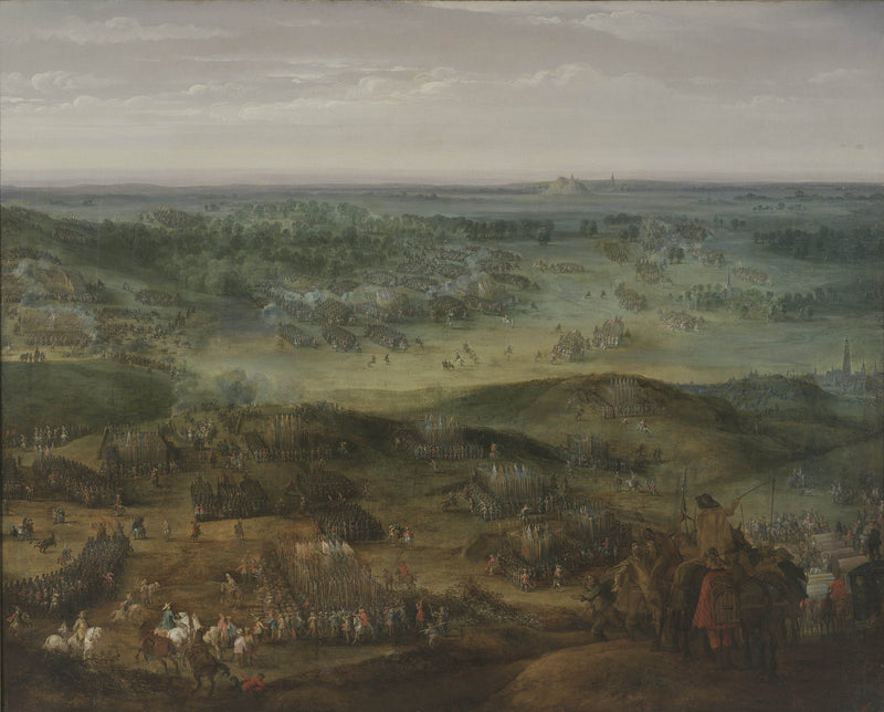 The Battle of Nördlingen (1634) I was by Peter Snayers. The version of the work of art was made with the exact dimensions of Height: 155 cm (61 ″); Width: 193 cm (75,9 ″) Framed: Height: 176 cm (69,2 ″); Width: 215 cm (84,6 ″); Depth: 13 cm (5,1 ″) and was made with the medium oil on canvas. What is more, the work of art is part of the Nationalmuseum Stockholm's digital art collection, which is Sweden's museum of art and design, a Swedish government authority with a mandatet o preserve cultural heritage and promote art, interest in art and knowledge of art. With courtesy of - Nationalmuseum Stockholm & Wikimedia Commons (licensed - public domain).Creditline of the artwork: . On top of that, alignment of the digital reproduction is landscape with a ratio of 1.2 : 1, which implies that the length is 20% longer than the width.