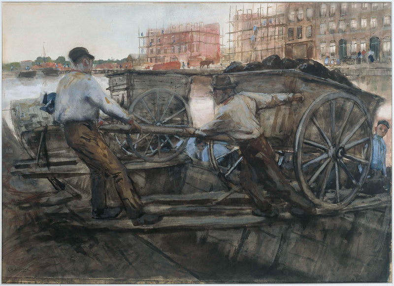 George Hendrik Breitner, 1900 - Labourers Pulling a Heavily Laden Cart on Jacob van - fine art print
